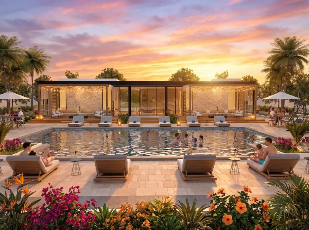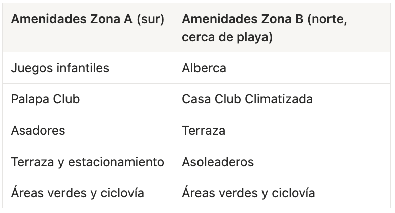 10 hectáreas diseñadas para vivir, no solo para habitar. Mar Azul integra dos zonas de amenidades distribuidas entre 380 lotes residenciales — una proporción que la mayoría de los desarrollos en Mazatlán no ofrecen.